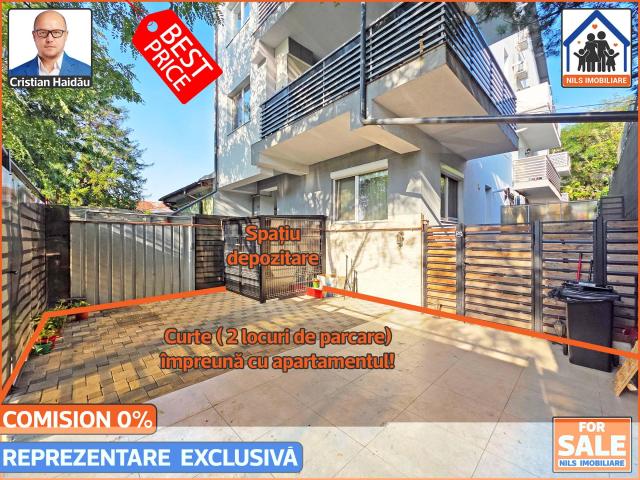 Apartamentul are si o curte de 29mp cu 2 locuri de parcare si un spatiu de depozitare acoperit pentru biciclete, trotinete, carucioare etc. /