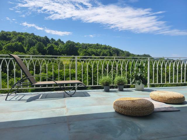 Terenul de peste 7000 mp inconjoara casa cu spatiu generos iar la baza lui curge un parau de munte, oferind locul ideal pentru relaxare. Fiind orientat spre sud, terenul permite montarea unui sistem de panouri fotovoltaice, asa incat sa nu fie afectat peisajul si naturaletea locului.