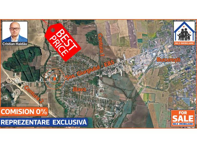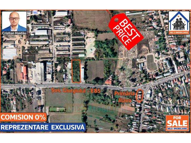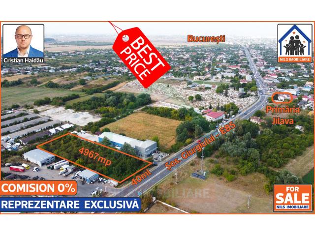 Teren intravilan in Jilava Ilfov, de 4967mp si cu dubla deschidere de cate 40ml. In fata fix la Soseaua Giurgiului - E85 si in spate la un drum paralel cu Sos Giurgiului. /