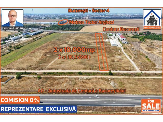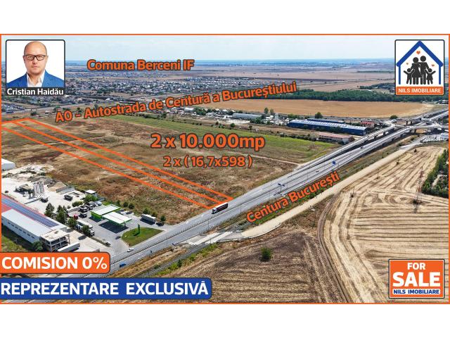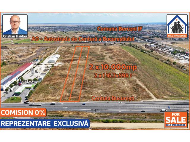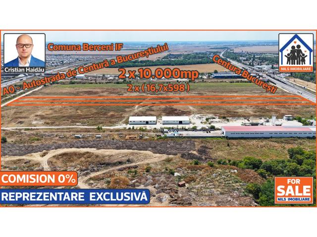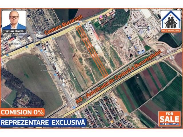 De vanzare doua terenuri intravilane alaturate, extraordinar de bine pozitionate, situate intre Centura Bucurestiului si A0 - Autostrada de Centura a Bucurestiului. /