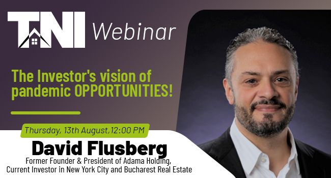Te invităm să ne fii alături la un nou webinar TNI! Joi, 13 august, ora 12:00 îl avem invitat pe David Flusberg, Fondator și Fost Președinte al Adama Holding, investitor pe piața imobiliară din New